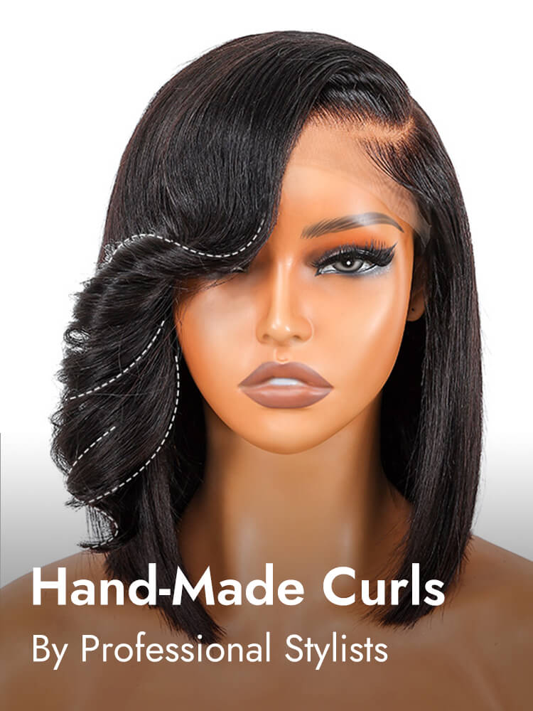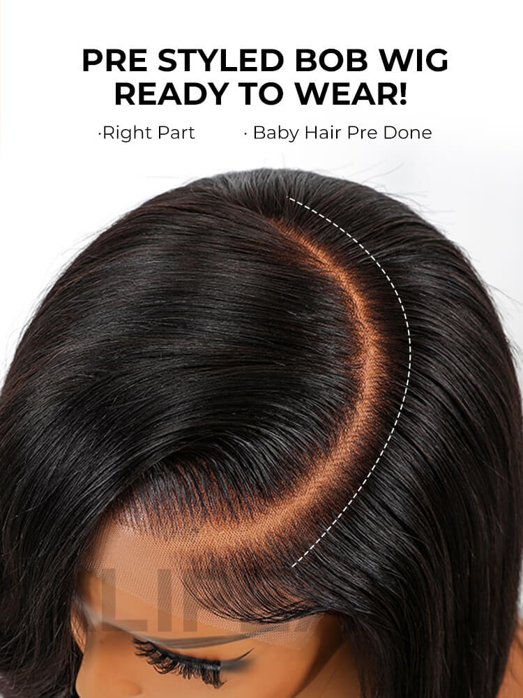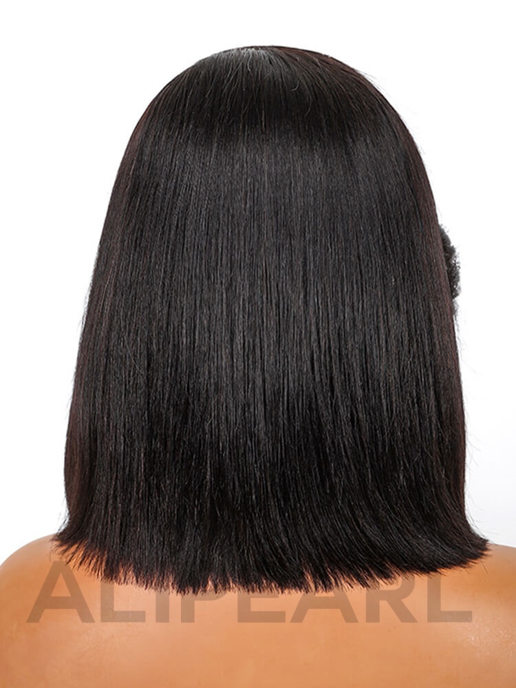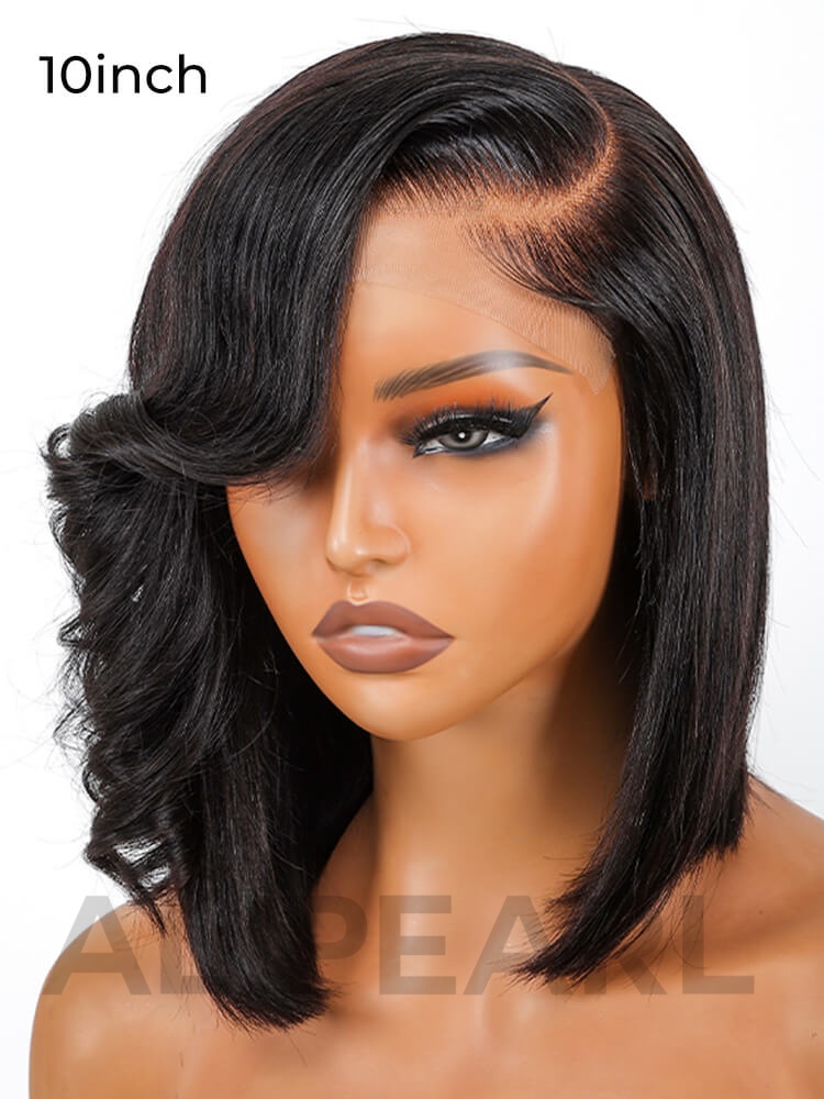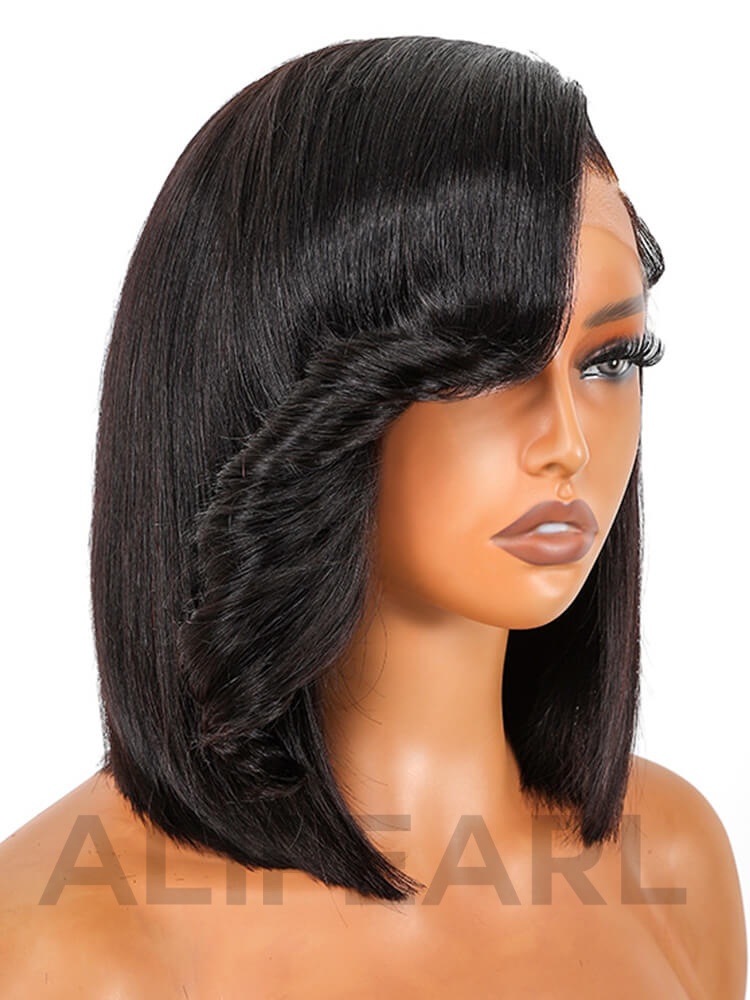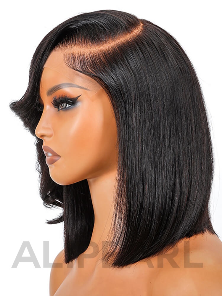 Alipearl Layered Cut Natural Black 5*5 HD Lace Closure Wigs Human Hair Bob Wig With Side Bangs For Women Pre-Plucked Pre-Bleached Knots