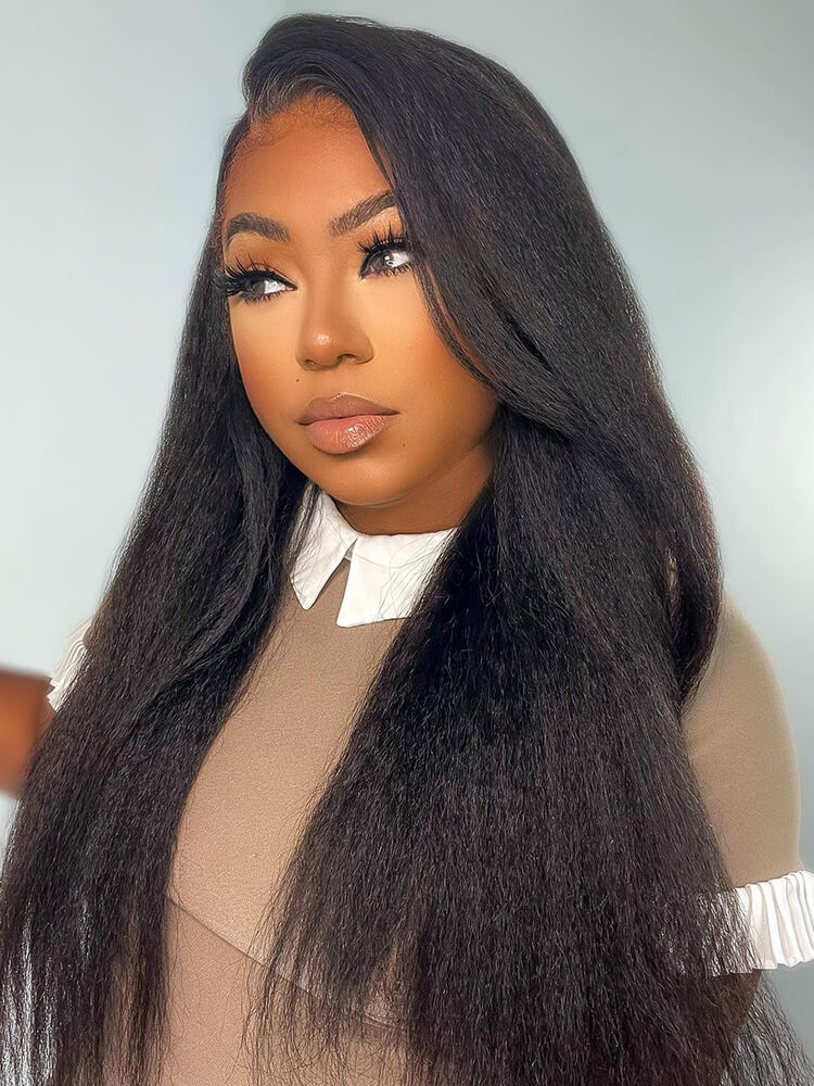 13×6 Parting Max Lace Frontal Yaki Straight Wig Human Hair 180% Density Natrual Black Color