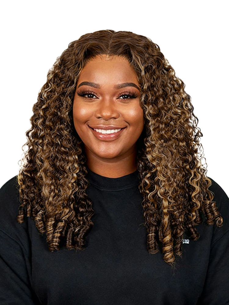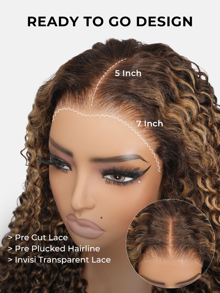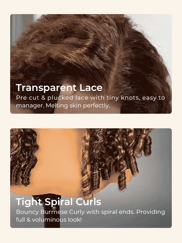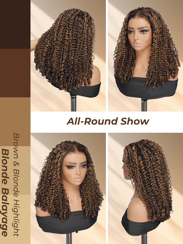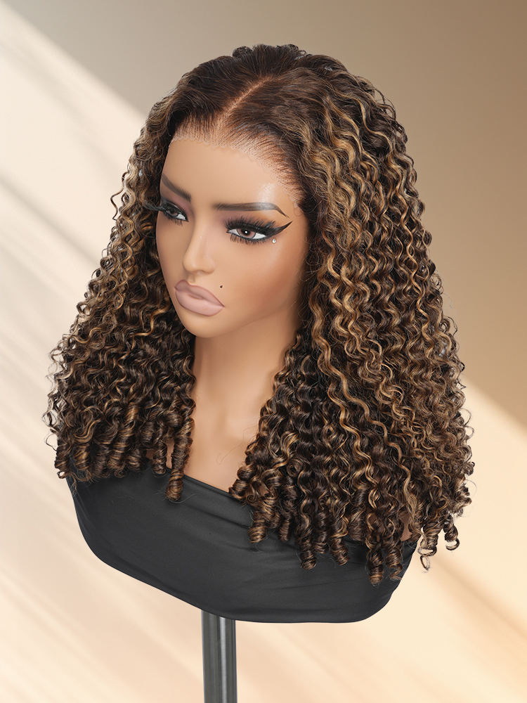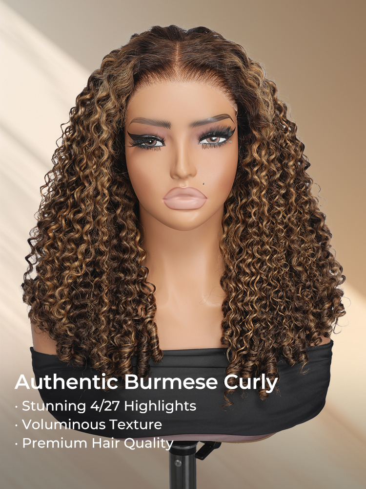 Alipearl Highlight Burmese Curly Wig With Finger Coil Ends, Pre Cut & Plucked 5*7 Lace For Natural Hairline. Curls Maintain Shape For Long, Giving Versatile Styles.
