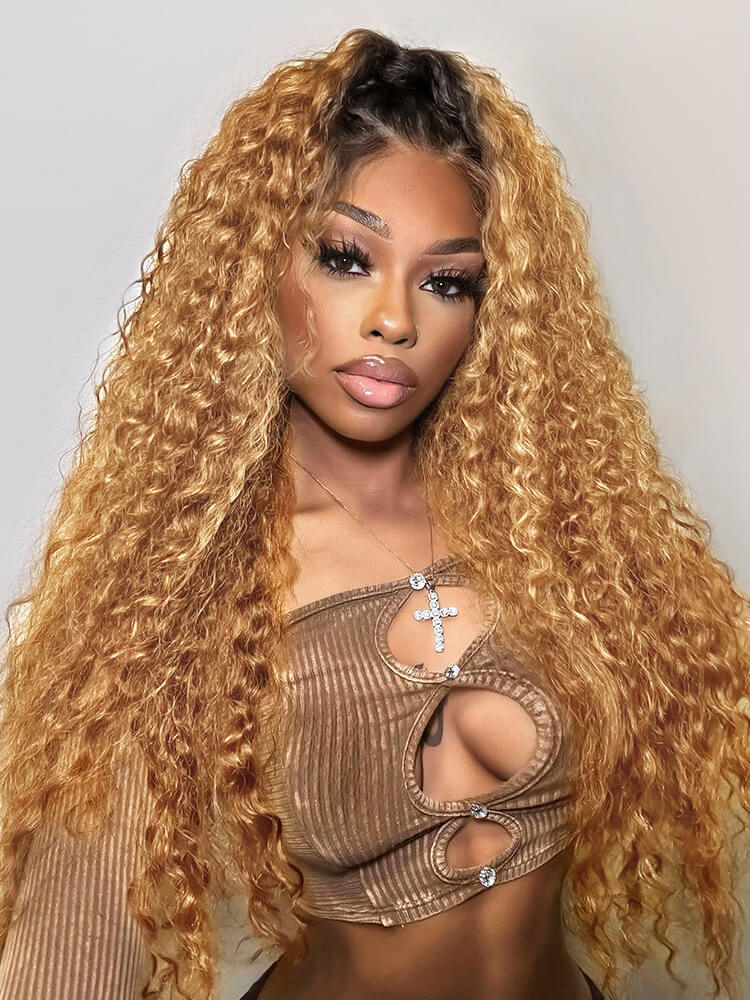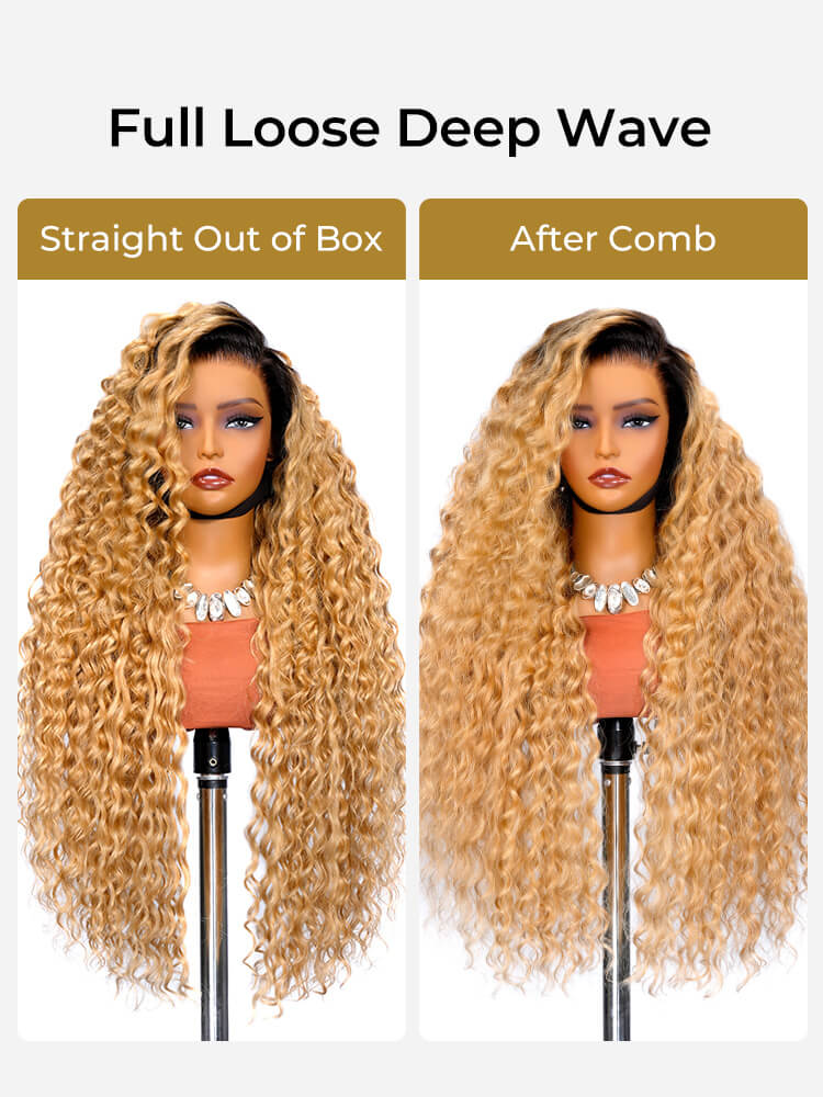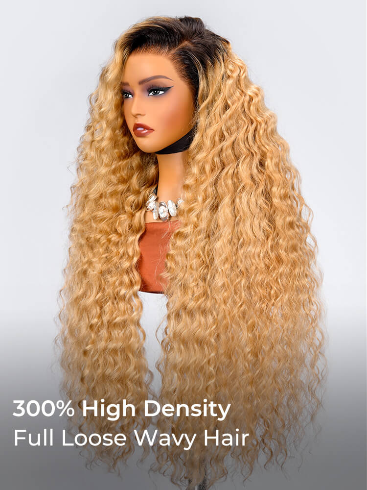 Red Carpet Look:Alipearl 30 Inch Long Hair 300 High Density Wig. Honey Blonde With Dark Brown Root, Loose Deep 13×5 HD Lace, Seamless And Realistic Hairline.