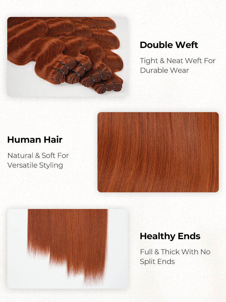 #35 Copper Ginger Hair Color Human Hair Bundles Body Wave And Straight#35 Copper Ginger Hair Color Human Hair Bundles Body Wave And Straight