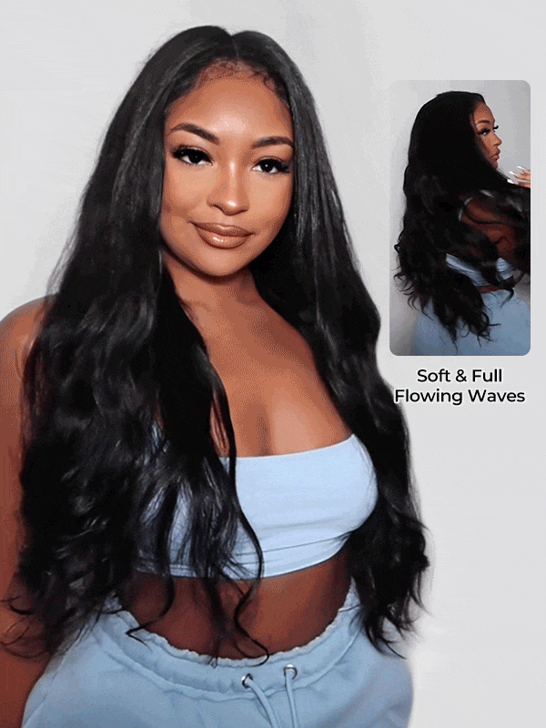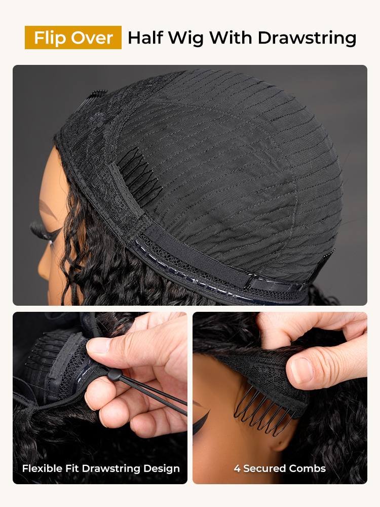 Alipearl loose body wave half wig. 4 secured combs, anti-slip strap & drawstring, fit all head size perfectly. Quick glueless install, get natural & full look.