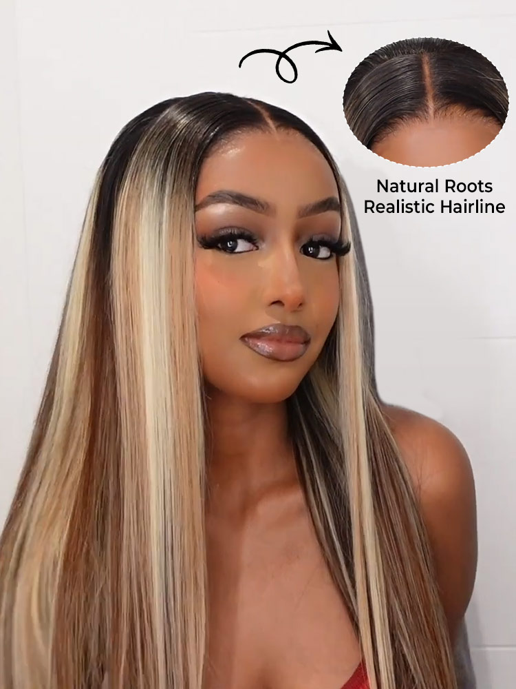 Alipearl Balayage Highlight Silky Straight Pre-plucked Human Hair HD Lace Wigs