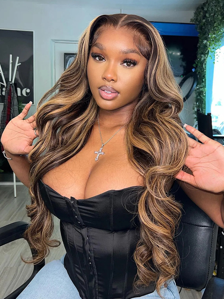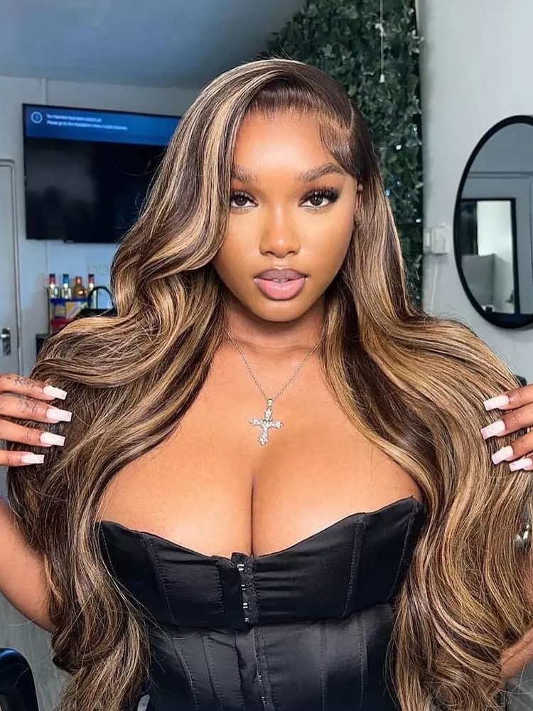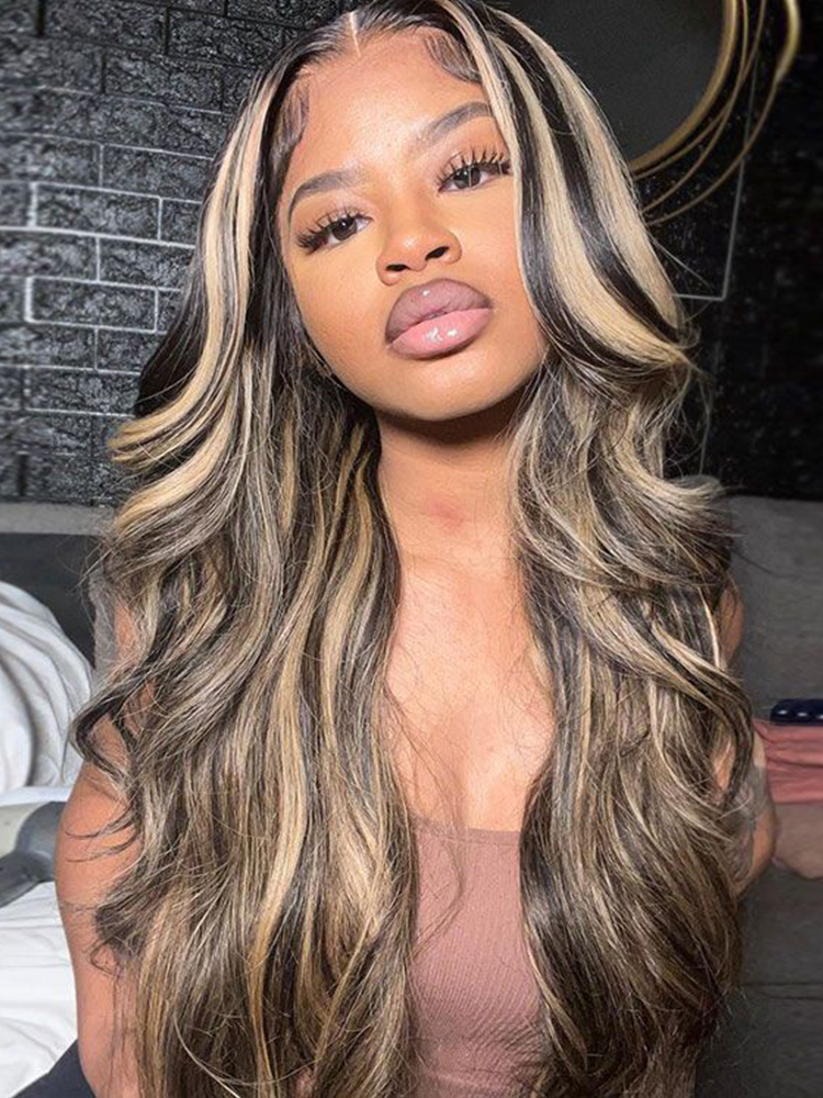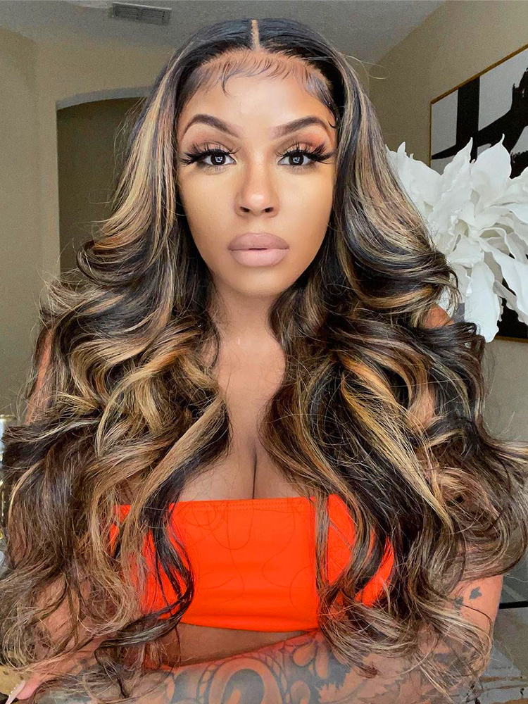 Alipearl Hair New Arrival Black Wig With Honey Blonde Highlights Human Hair, 180% 250% Density Thick Piano Colored Body Wave 13×4 Lace Frontal Wigs With Honey Blonde Balayage Highlights, This Highlight Wig Can Make You Feel Fresh, Shop Now, Enjoy Free Shipping!