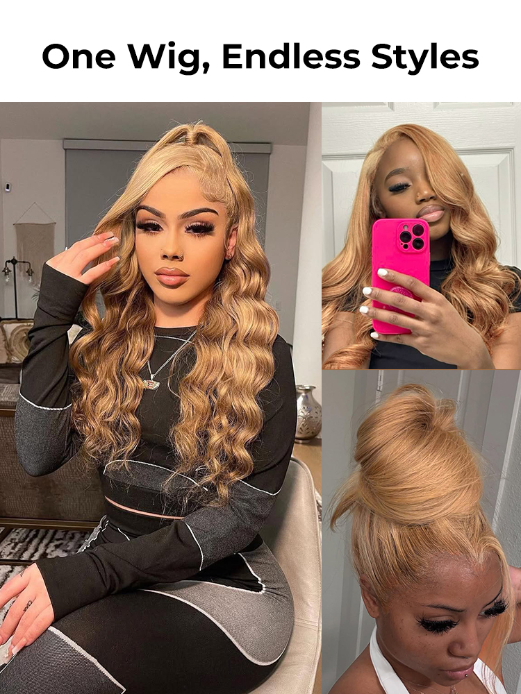 Alipearl Radiant Honey Blonde Wig Features 13*4 Large Lace, Allowing For Free Middle Or Side Parts. It Also Boasts Body Wave Texture, Cranking Up Your Style Game.