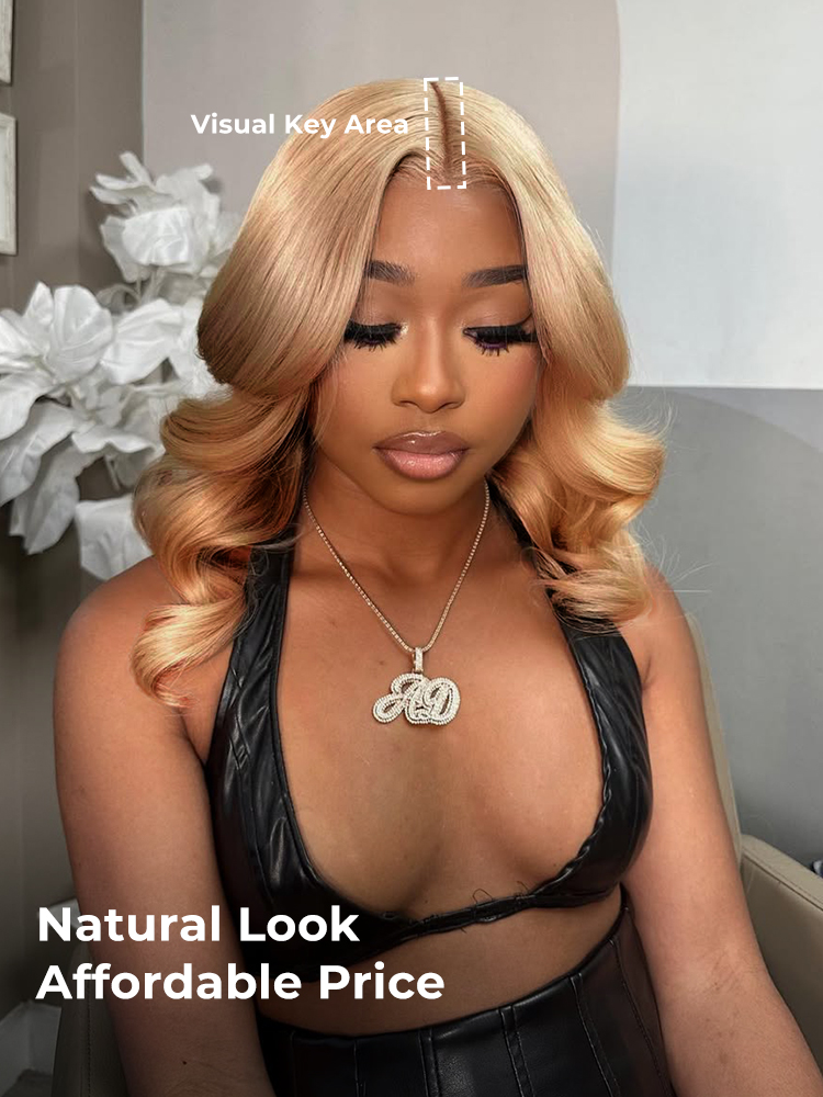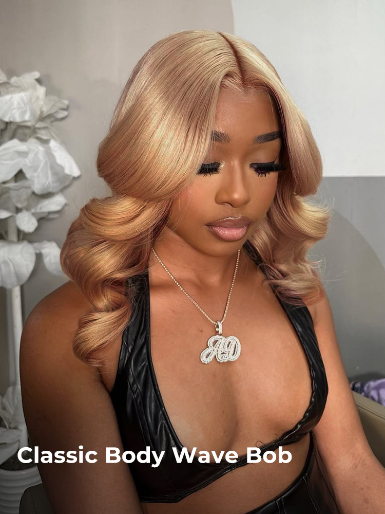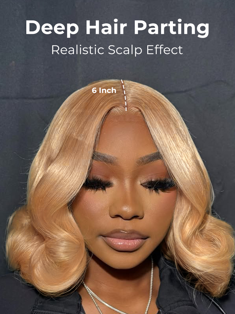 Alipearl Honey Blonde Short Bob Wig Boasts Glamorous Body Waves.The 2*6 Super-Deep Lace Closure Delivers a Much More Natural-Looking Hair Parting.An Affordable Pick!