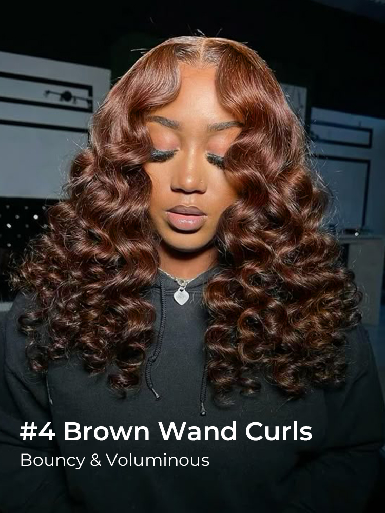 Alipearl 250% High Density #4 Chocolate Brown Wand Curly Wig With 13×4 Transparent Lace, Melt Any Skin Tone Easily. Bouncy Weaves Getting Full And Natural Look.