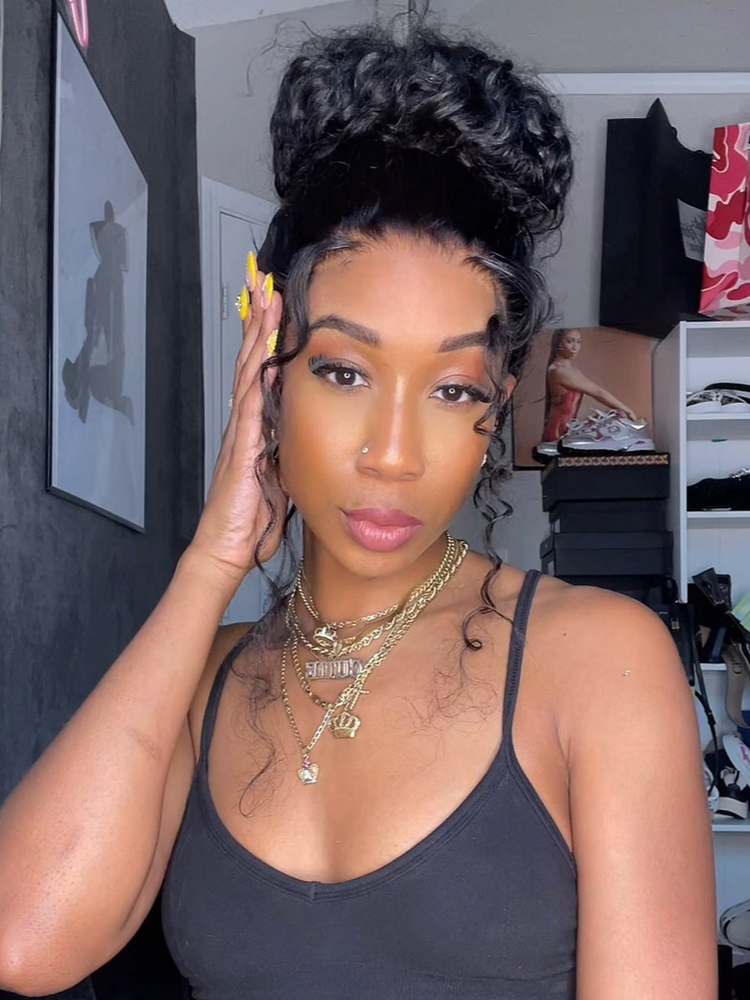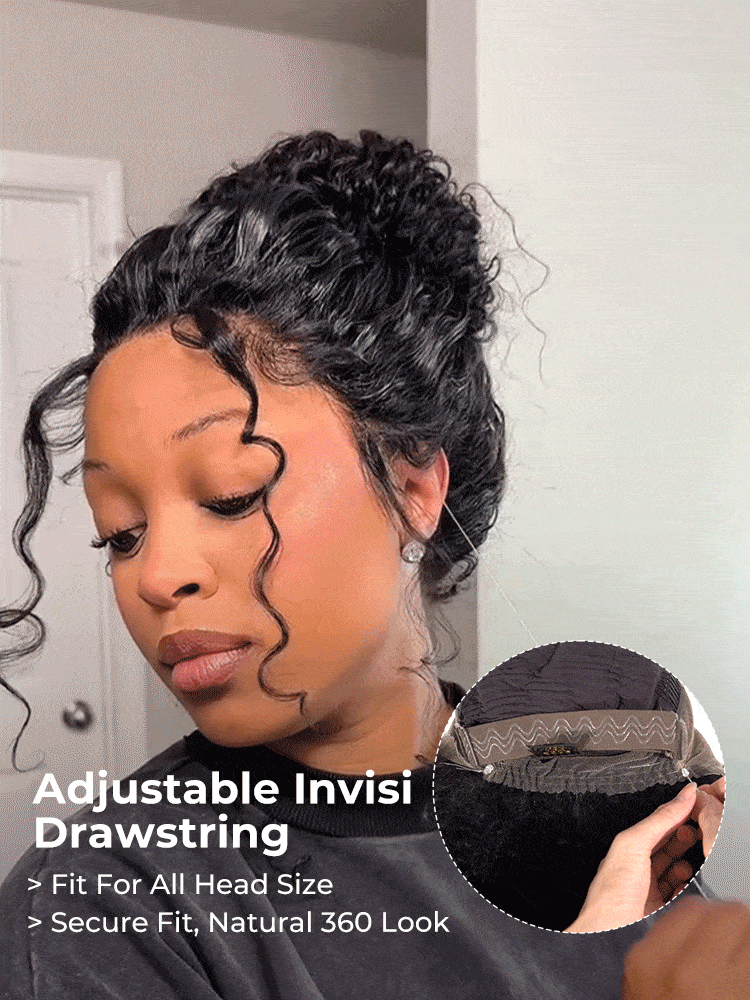 Messy Bun Water Wave 360 HD Lace Glueless Wig With DrawstringMessy Bun Water Wave 360 HD Lace Glueless Wig With Drawstring
