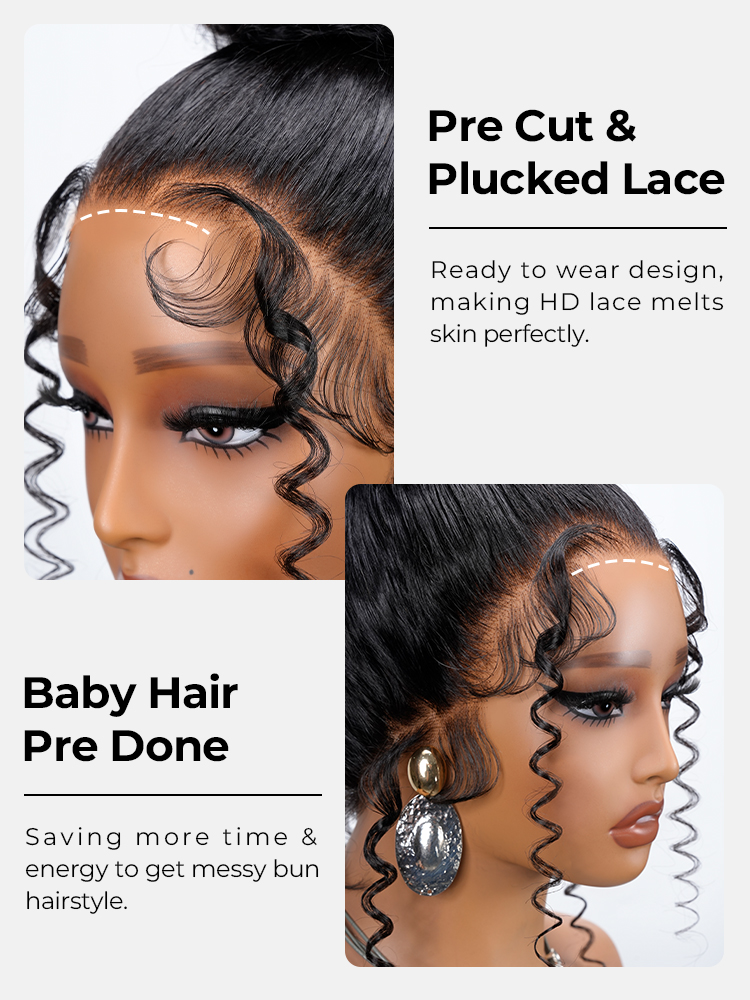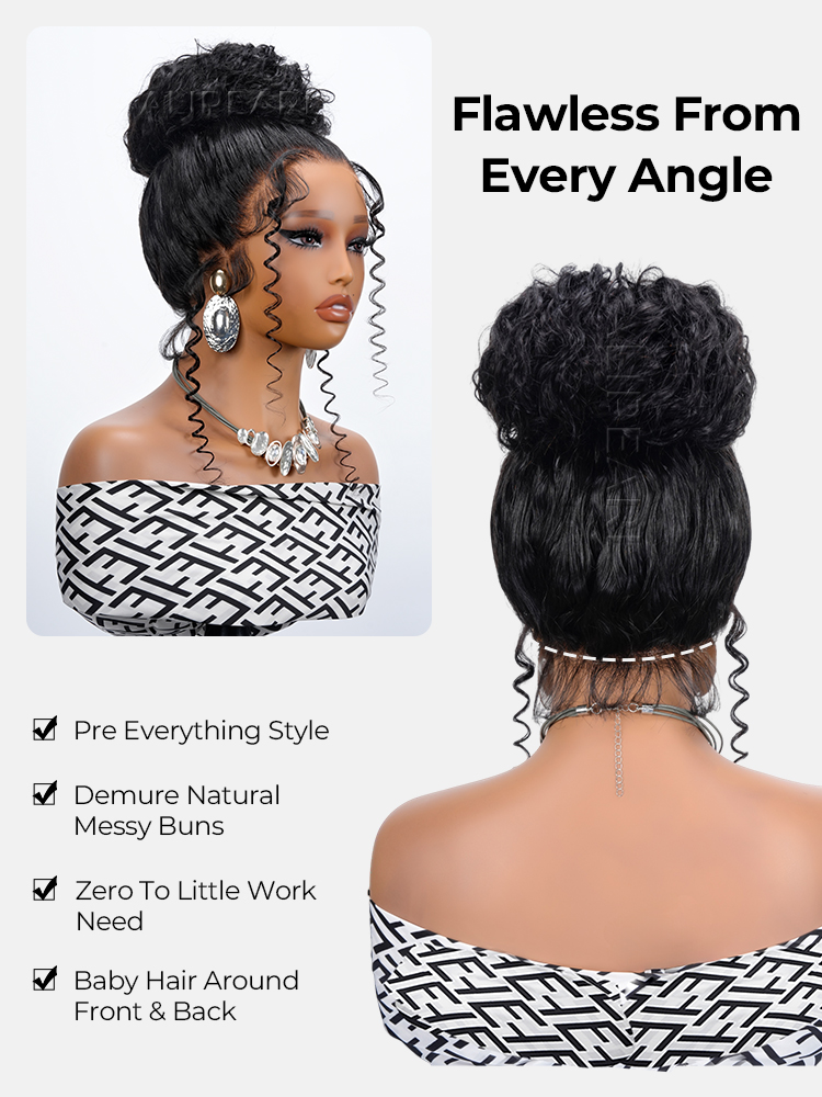 Messy Bun Water Wave 360 HD Lace Glueless Wig With Drawstring