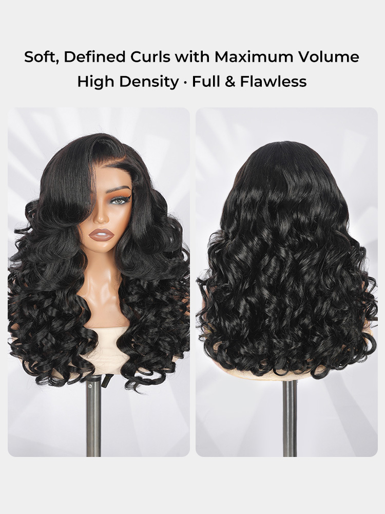 Butterfly haircut body wave wig with face-framing layers. Ready to go design with pre cut 6×8 lace closure. 100% human hair with soft, bouncy waves and full volume.