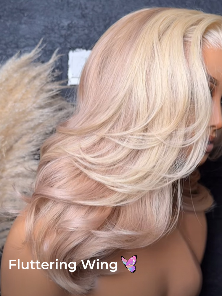 Alipearl Trendy Butterfly Haircut Rose Gold Wigs, Adding Dimension To Your Look. 13*6 Lace Fronta With M Shaped Hairline Give A Natural And Comfortable Feeling.