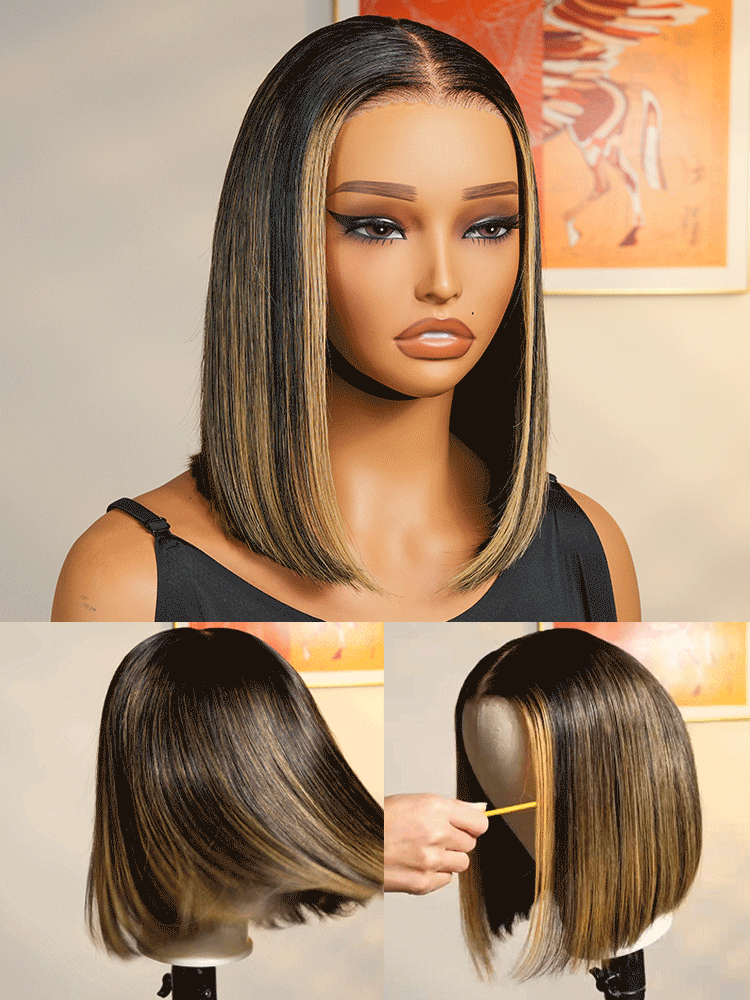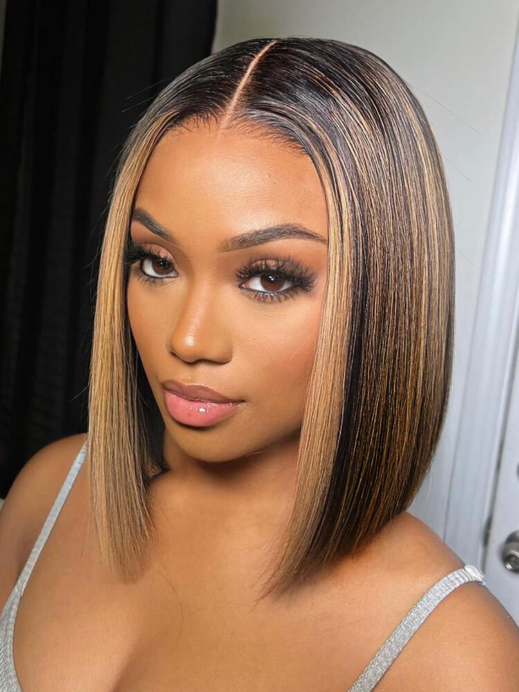 Alipearl Hair Highlighted Piano #1B/30 Color Straight Hair Pre-Plucked Lace Wigs With Baby Hair Short 13×4 Lace Frontal Wigs In 180% Density For Sale