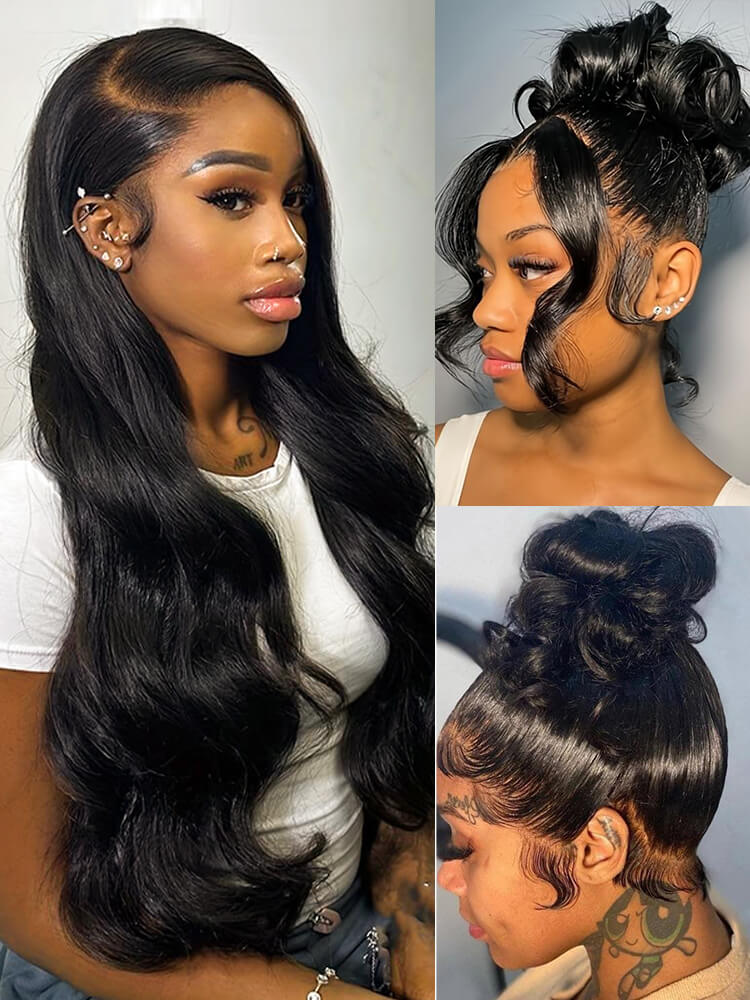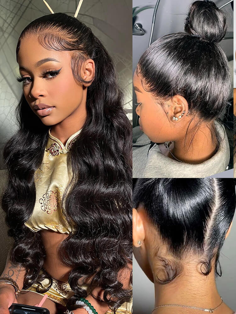 Alipearl Hair Body Wave 360 Transparent Lace Frontal Wig Natural Color Body Wave Human Hair Wigs 100% Virgin Hair Pre-plucked with Baby Hair 360 Lace Wigs 180% 200% 250% Density, Can Be Restyle Ponytail