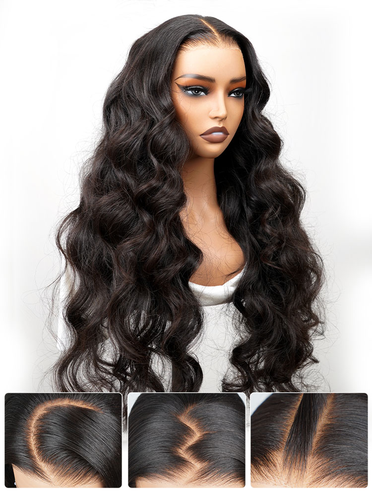 Glueless Ready To Wear 7×4 Lace Closure Body Wave Human Hair Wigs,Pre Plucked Pre Bleached Knots,Ready To Go Wig Beginner Frinedly, Invisible Lace Melt All Skin Tones, Also Can Be Restyled As You Like.