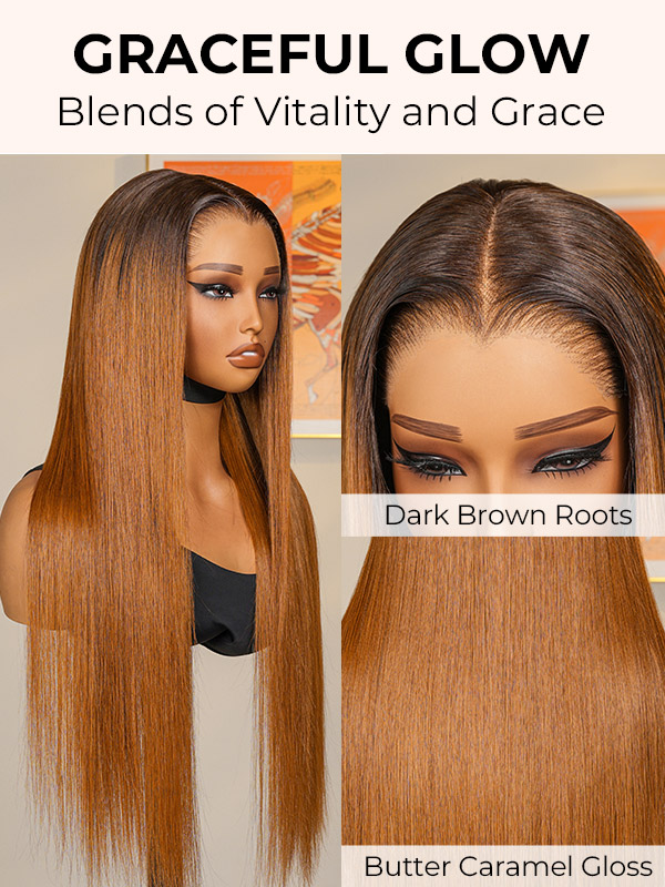 M Hairline Cara Milk Orange Color Wig With Burnt Umber Color Roots 13*6 Lace Frontal Wig