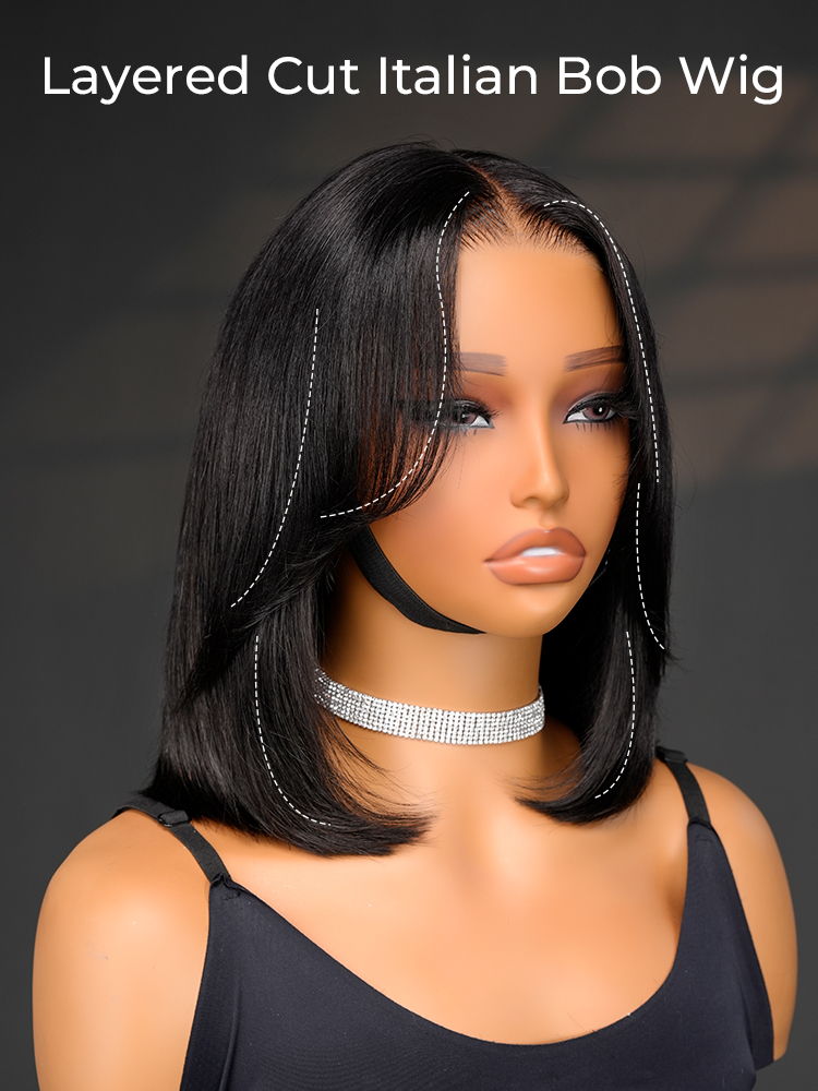 Upgrade your look with our Human Hair Layered Italian Bob Wig! 100% real hair, glueless ready-to-wear. Chic, layered, and effortless style. Perfect for any occasion!