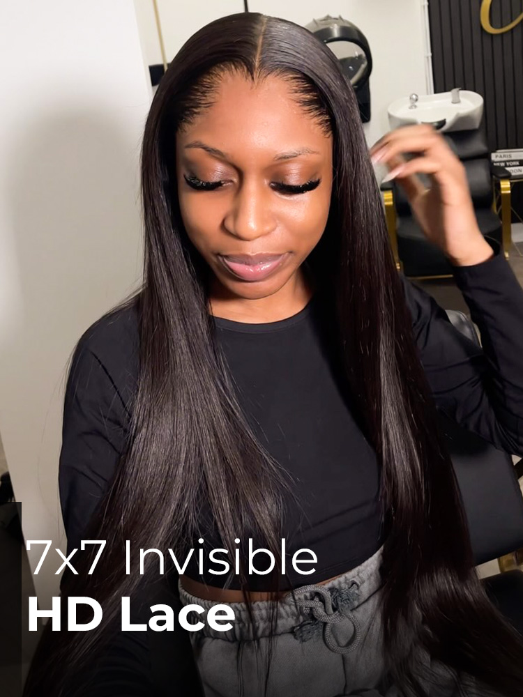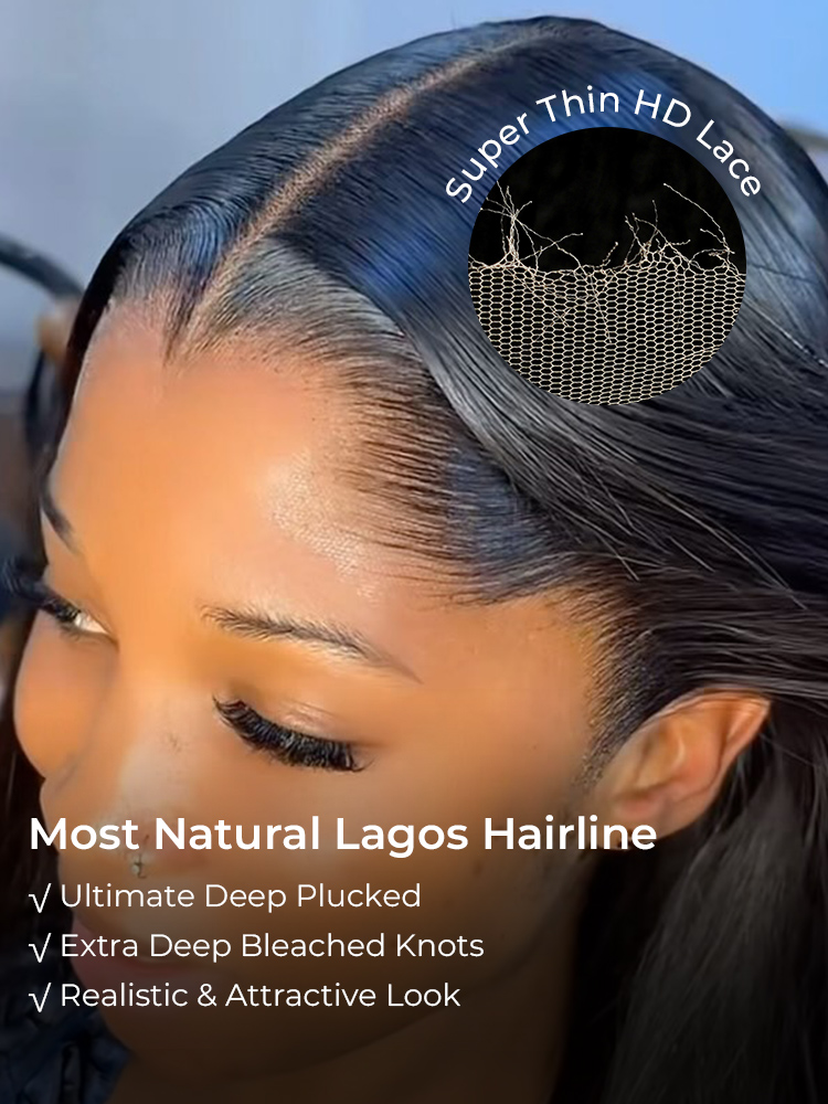 Lagos M Hairline Straight 7×7 HD Lace Front Wig Human Hair Seemless Lace Wig 180% Density