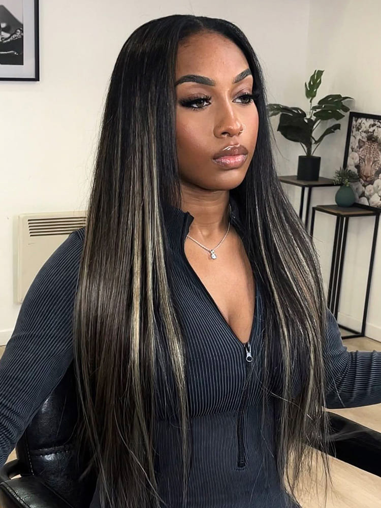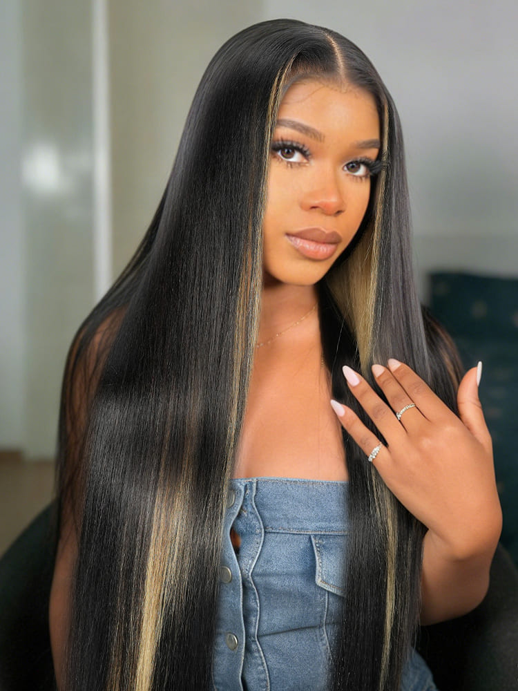 Alipearl light yaki straight glueless 6*8 lace wig with hidden blonde highlights.250 density makes it full.Natural texture and color,parting easy, perfect for everyday looks