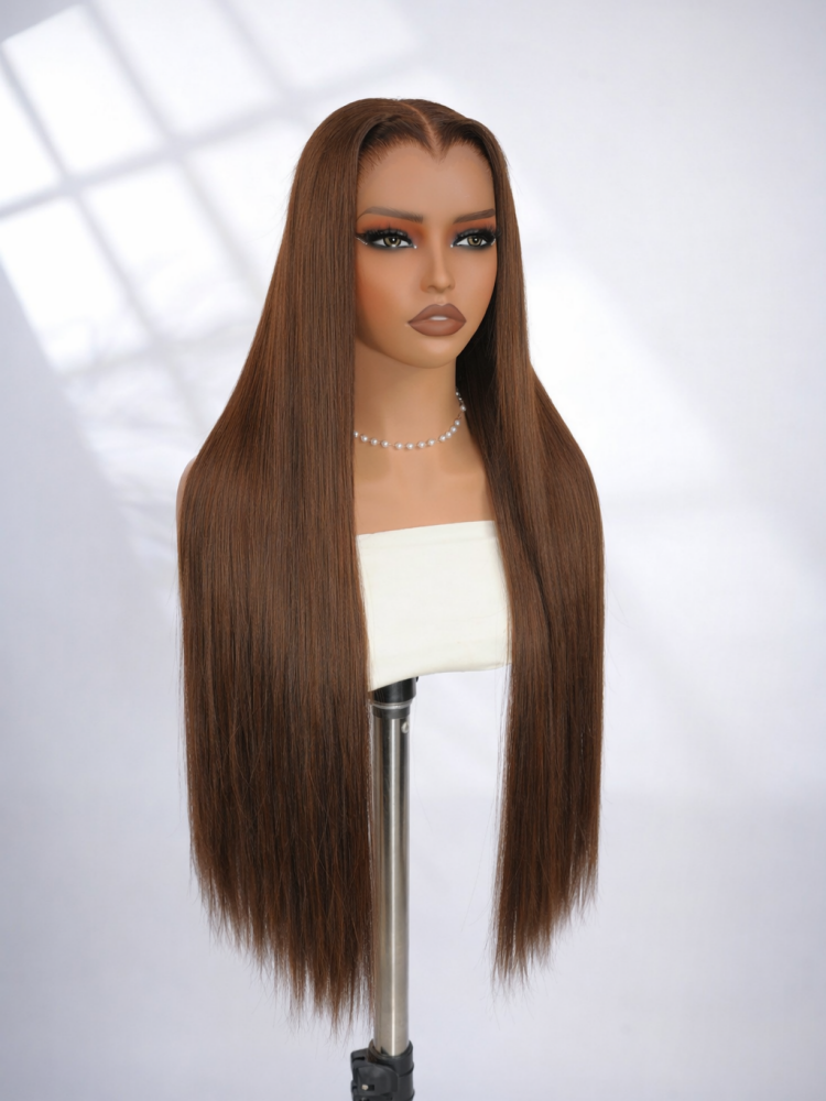 Natural Scalp Look In Alipearl. 250 High-Density Straight Wig With Pre-Plucked Hairline. Available In 6×8 And 13×6 Lace Options. Melts Skin Perfectly. Classic #4 Brown Color Never Out Of Fashion.