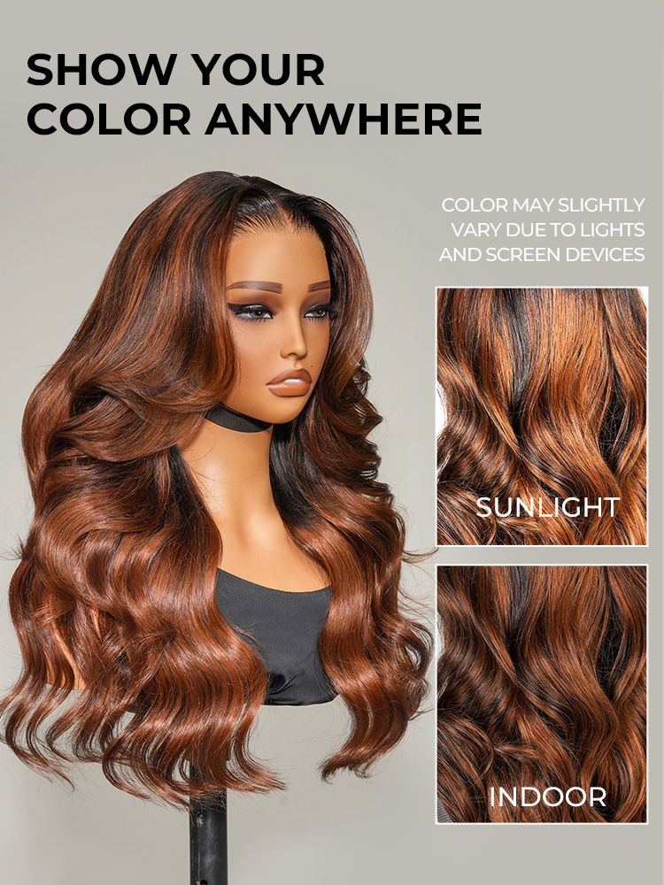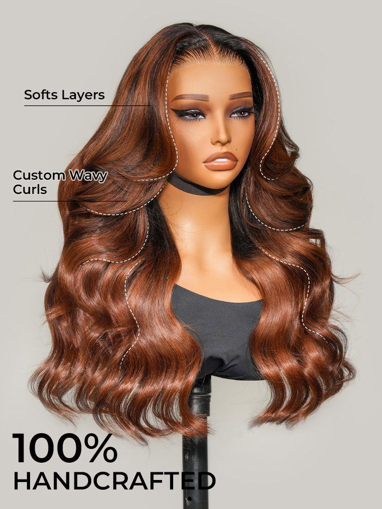 Alipearl Original Caramel Balayage 13×4 Lace Front Wig Customized Wavy Hair 14-30 Inch Available,180%/250% Density, True Glueless Wig Pre-Cut Lace, Tiny Knots, Best Ready To Go Highlight Wigs For Fall And Winter!