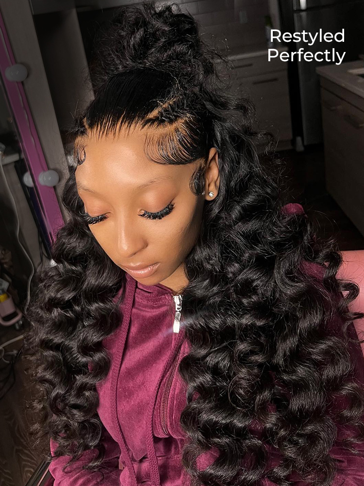 New Bouncy Loose Wave Wig Human Hair With Parting Max 13*6 HD Lace Frontal, Pre Plucked Hairline, Saving More Time And Effort To Get Realistic Look.