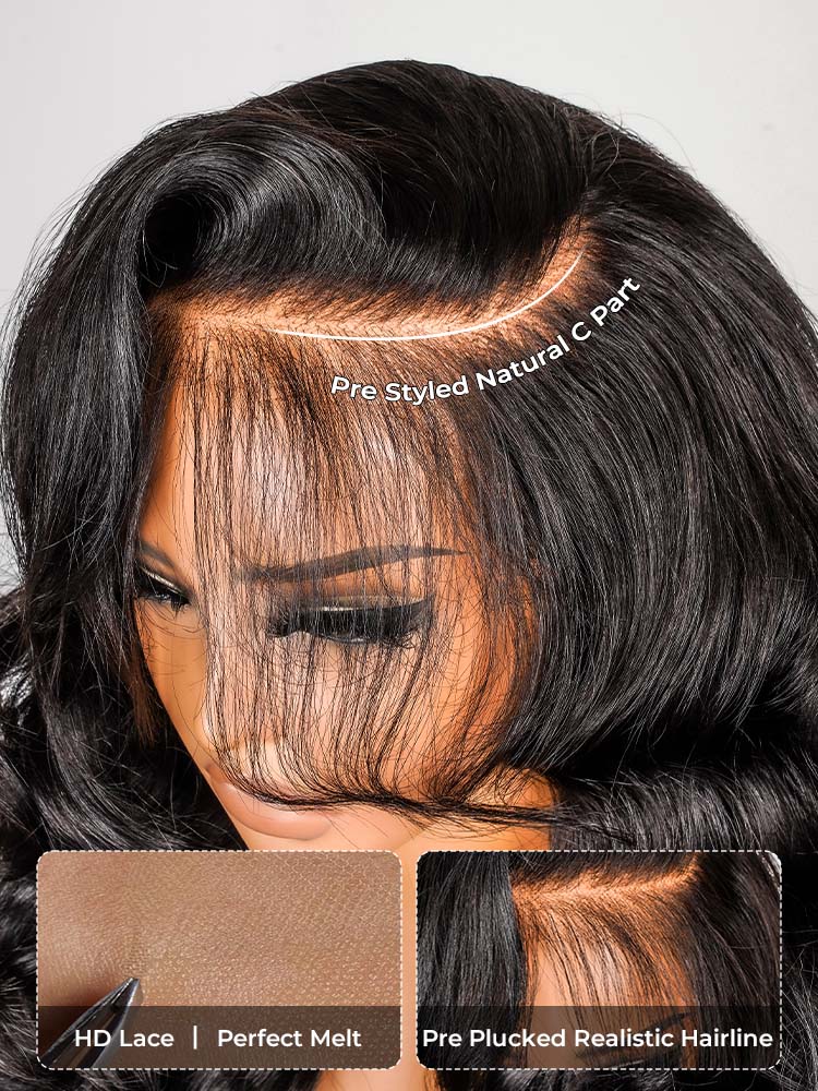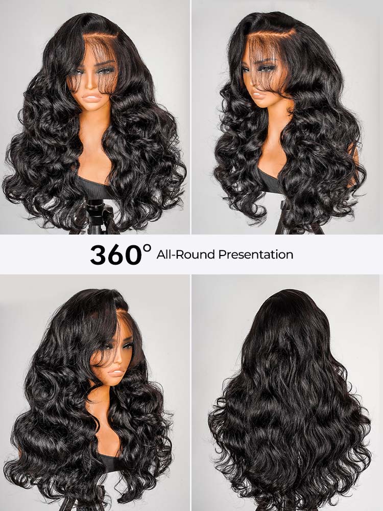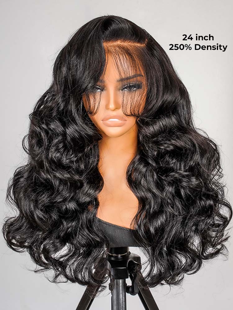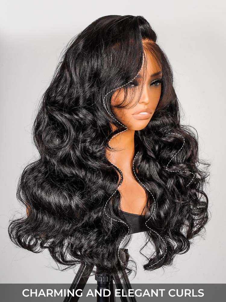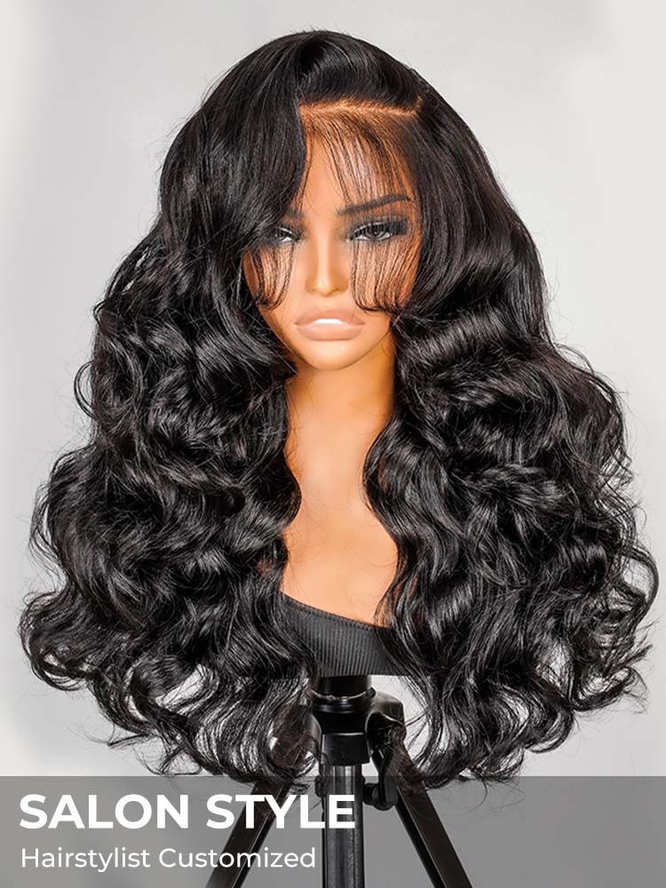 Salon Style-Glueless Bouncy Wavy 6*8 Lace Front Wig Side Part Ready To Go With Drawstring