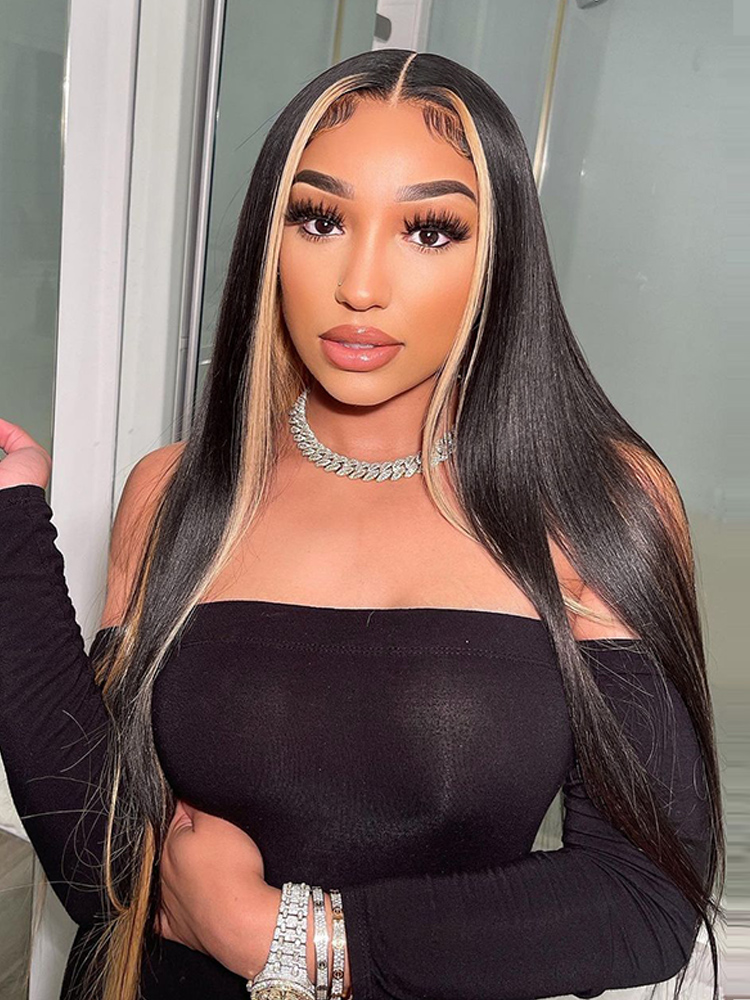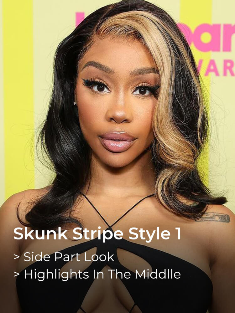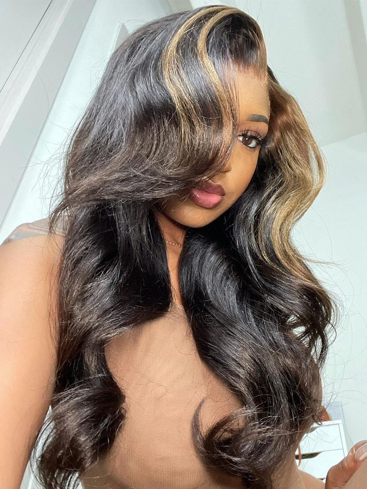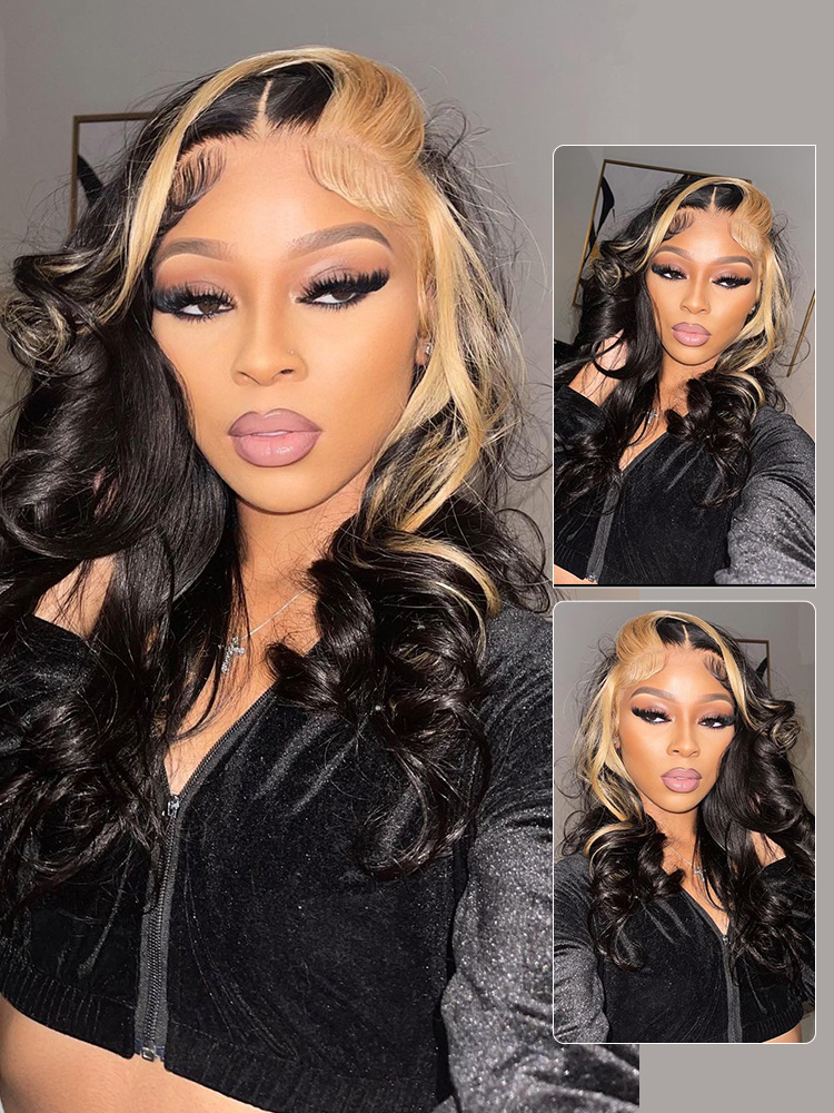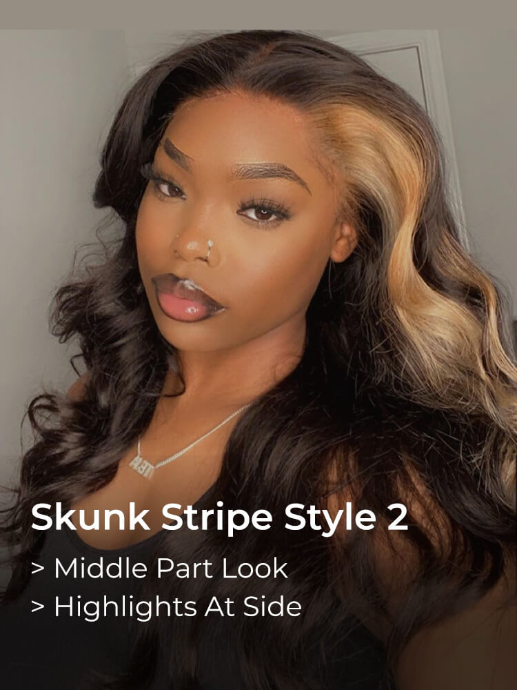 Alipearl Blonde Skunk Stripe Natural Hair Body Wave Human Hair Wigs 5×5 lace closure wigs and 13×4 lace front wigs with Blonde Skunk Streak in the front 180% Density, Highly Recommended.