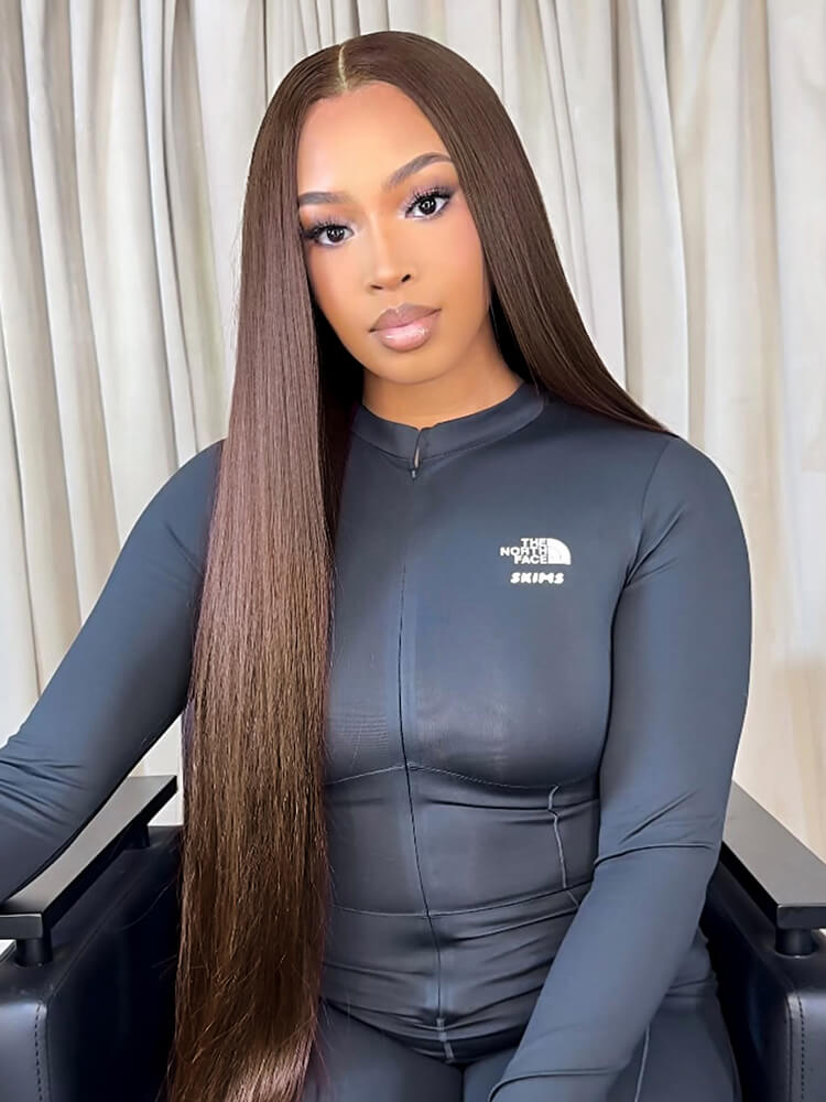 Chocolate Brown Silky Straight 13×6 HD lace Frontal Long Human Hair Wig