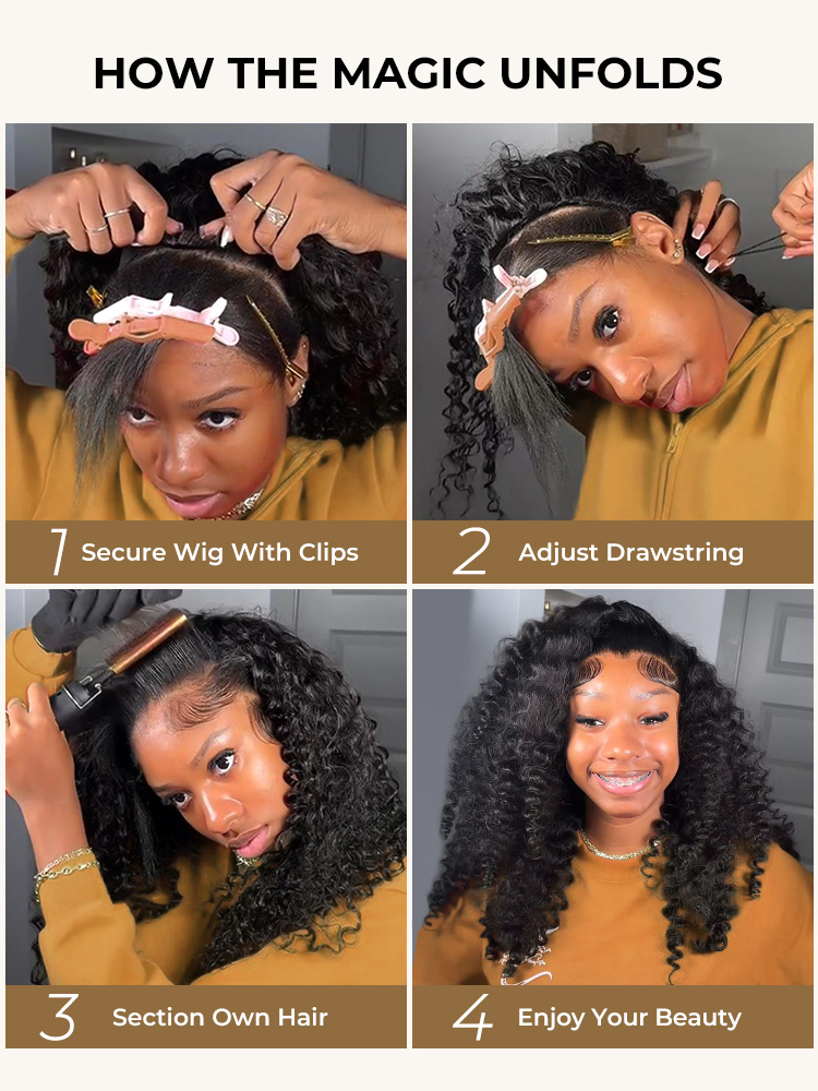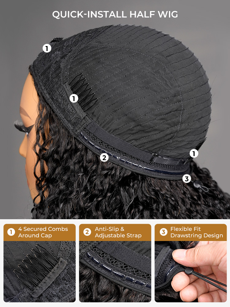Alipearl Cute Wand Curl Flip-Over Half Wig With Secure Clips, Anti-Slip Straps And a Drawstring, Making It Extra Scalp-Friendly And Time-Saving.