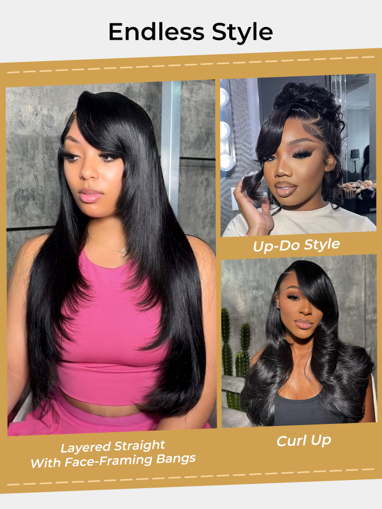 Alipearl Layered Straight Wig With Side Swept Fringe Echo The Nostalgia Of Past Trends While Staying Modern. No Extra Work For Pre Cut 5×7 Lace, Just Put On & Go!